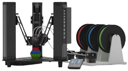 Главная особенность этого принтера - возможность печатать разными цветами. Трехцветная печатающая головка позволяет смешивать цвета при печати и задавать время подачи для каждой из нитей. Две схемы смешивания цветов в цветовом режиме CMY позволяют делать плавный градиент между цветами или печатать попеременно каждой из нитей.