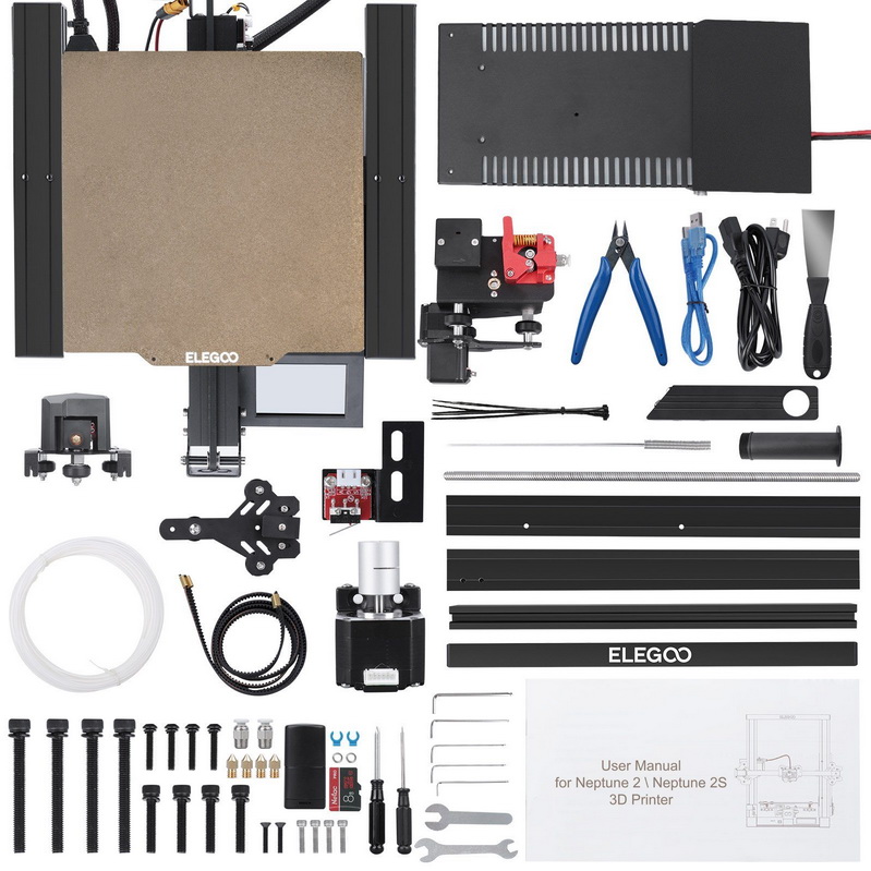Как и базовая модель, 3D принтер Elegoo Neptune 2S имеет компоновку открытого типа и поставляется в виде DIY-набора.