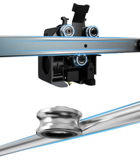 Основное отличие модели Neptune 4 Pro от Neptune 4 заключается в использовании металлических компонентов вместо пластиковых. Они являются более долговечными и устойчивыми к внешним факторам. Так, в конструкции Neptune 4 Pro верхняя балка выполнена из металла, а не из пластика, как у Neptune 4. Также металлические ролики направляющих вместо POM, используемых в модели Neptune 4, делают работу принтера более стабильной.