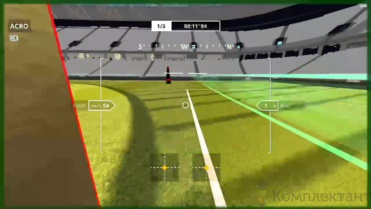 Режим полета на трассах предназначен для отработки маневрирования на скорость и проведения гоночных турниров на спортивных дронах. Подходит как для начинающих, так и для опытных пилотов.