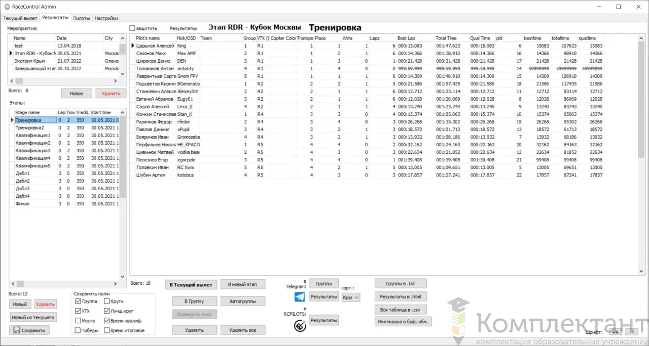- программное обеспечение RaceControl Admin
