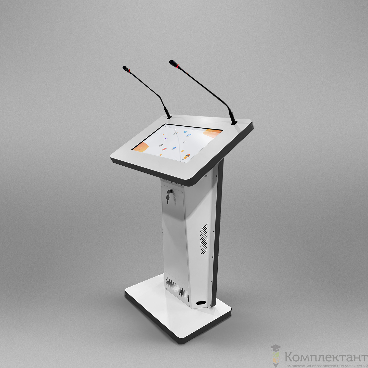 Главная задача интерактивной трибуны - упростить выступление спикера. Больше не нужно собирать пазл из ноутбука, микрофонов, усилителей и колонок, а после этого заниматься монтажом и настройкой - за Вас это сделает наше производство! Данный мультимедийный комплекс также подходит для проведения лекций и презентаций.
