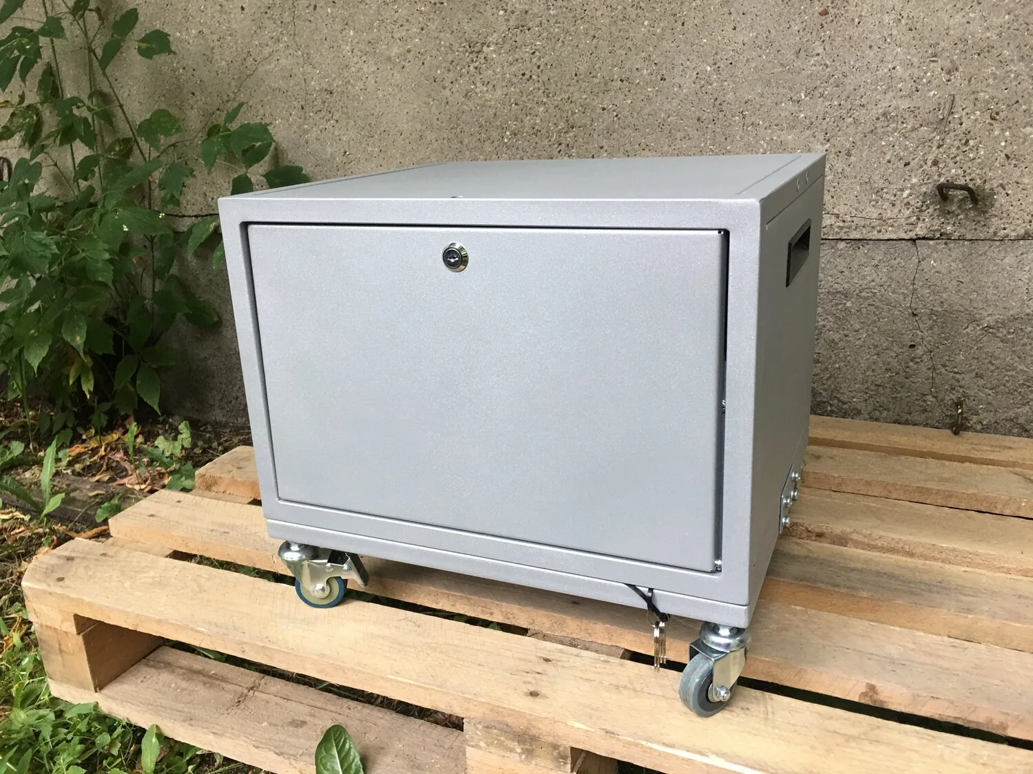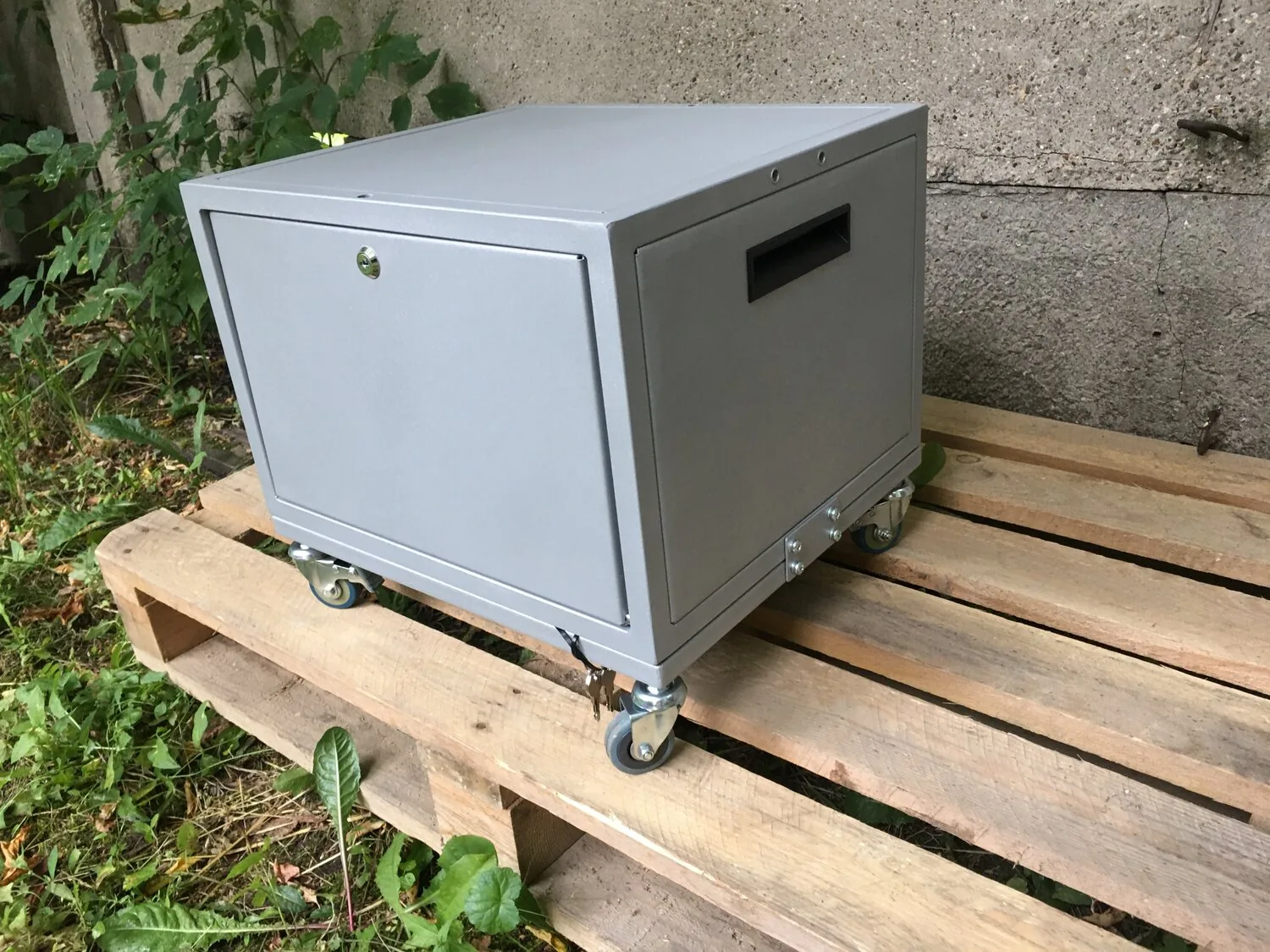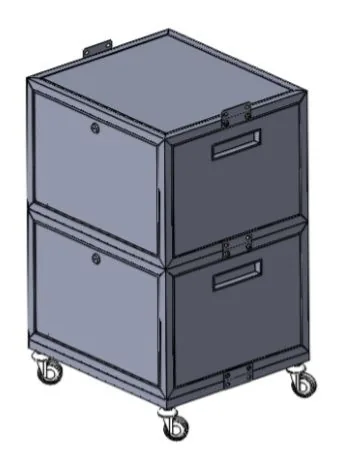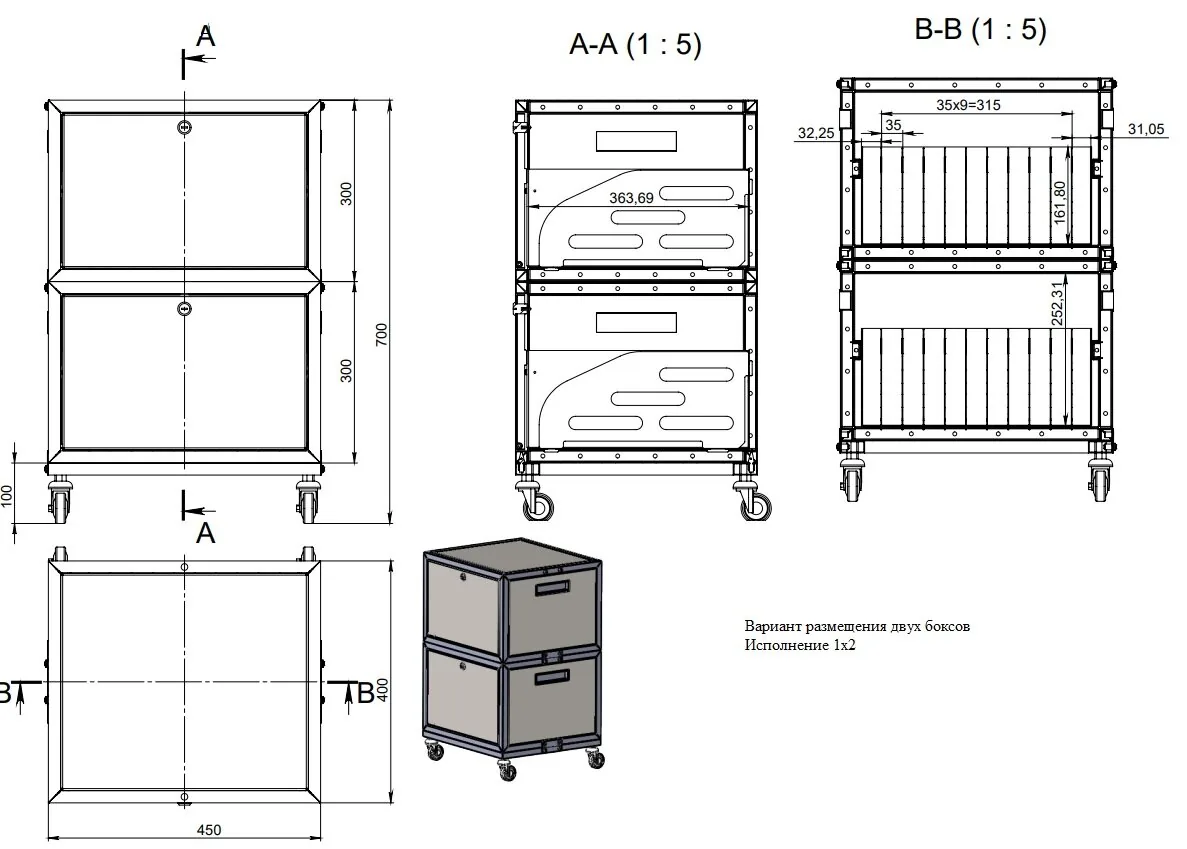 Бокс оснащен колесами (диаметр 50 мм, кол-во 4 шт) с тормозной системой для удобства и безопасности транспортировки.(доп опция)