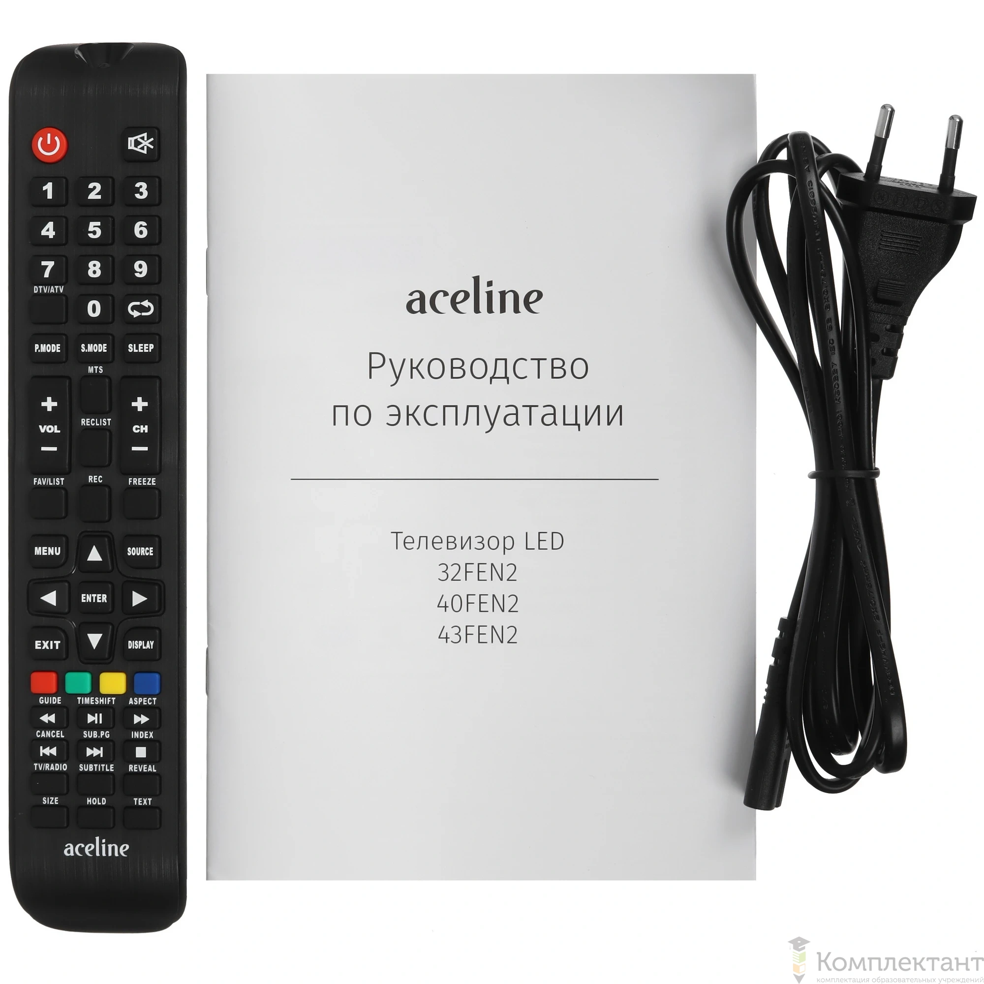 Телевизор Aceline 43FEN2 поддерживает стандарты цифрового вещания DVB-C, DVB-S, DVB-S2, DVB-T и DVB-T2. Для игровой консоли, приставки и других устройств предлагаются 3 видеовыхода HDMI. С помощью 2 портов USB можно воспроизводить мультимедийные файлы с накопителей. Телевизор поставляется с подставкой в виде двух опор и предусматривает настенное крепление.