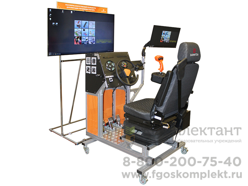 Устройство учебного тренажера предусматривает стандартную компоновку рабочего места машиниста и размещение органов управления колесного трактора.