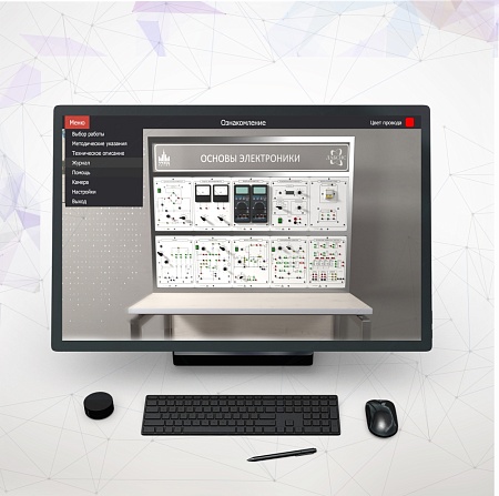 Тренажер предназначен для обучения студентов электротехнических специальностей в высших и средне специальных учебных заведениях, центрах повышения квалификации. Тренажер обеспечивает выполнение лабораторного практикума по дисциплине «Основы электроники», «Промышленная электроника». Тренажер представляет собой виртуальный аналог реального учебного стенда «Основы электроники» и позволяет выполнять осмотр стенда в 3D пространстве, собирать схемы и проводить лабораторные работы, входящие в список работ реального стенда.