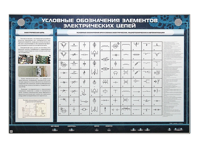Электрифицированный стенд предназначен для получения знаний о разновидностях условных обозначений элементов электрических цепей.