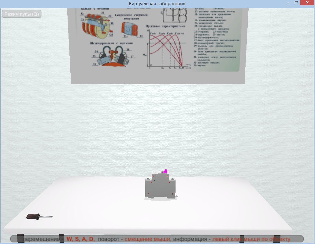 Практикум позволяет в трехмерной среде изучать конструкцию электроаппаратов и разбирать их при помощи виртуальных инструментов. Все составляющие каждой модели имеют подписи с названием и назначением.