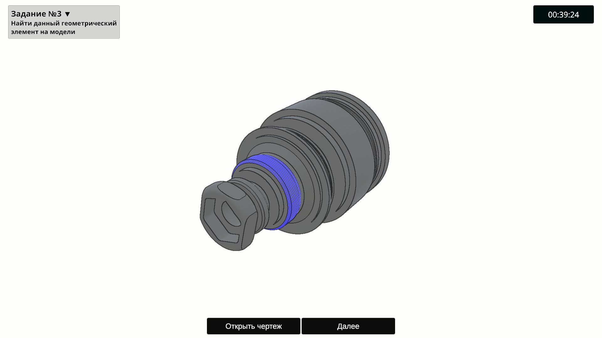 В качестве заданий пользователь должен определить верные 3D-модели деталей, соответствующие чертежу; найти и указать обозначения и размер, определить технические требования и информацию, указанную в штампе машиностроительного чертежа; найти на 3D-моделях поверхности с соответствующими требованиями; определить или рассчитать отклонения, предельные размеры и др.