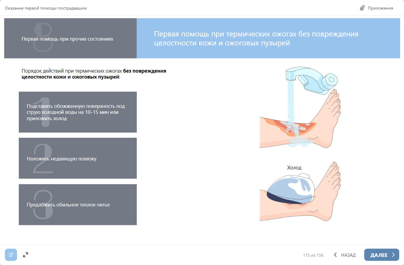 8.2. Первая помощь при термических ожогах без повреждения целостности кожи и ожоговых пузырей