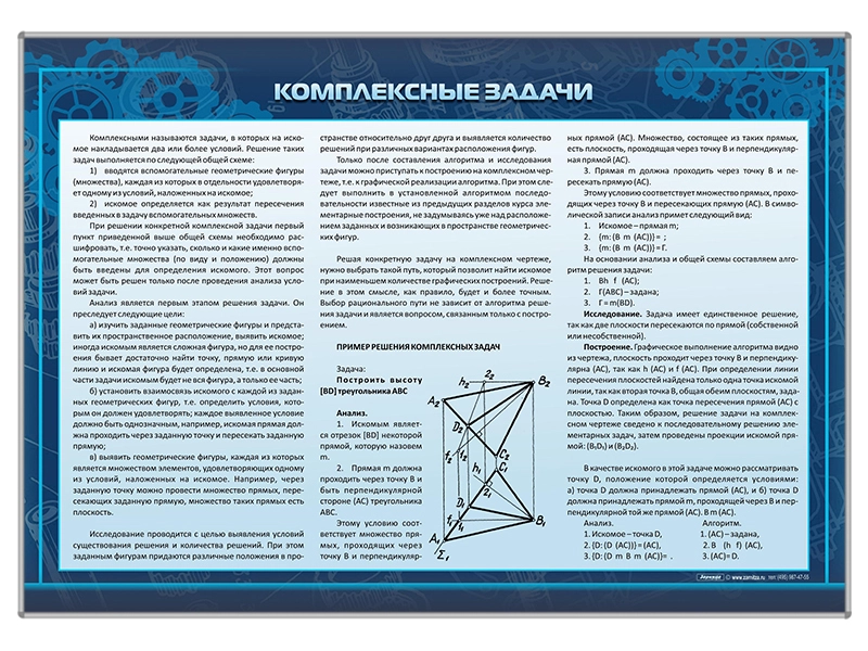 Комплект стендов "Инженерная графика и начертательная геометрия" (20 шт.) представляет собой комплект стендов, на которых размещены рисунки, схемы, таблицы, графики и формулы по курсам: