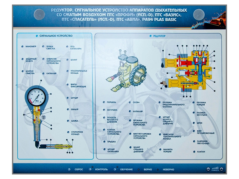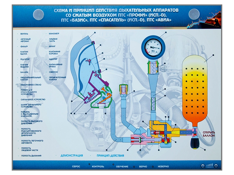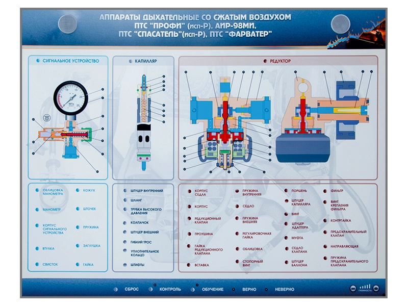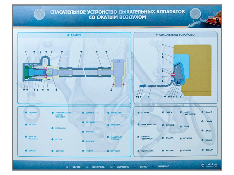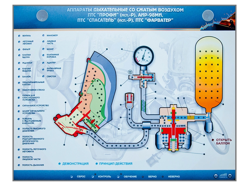 Комплект электромеханических стендов "Дыхательные аппараты со сжатым воздухом" интегрированные в секционно-кассетный презентационный модуль