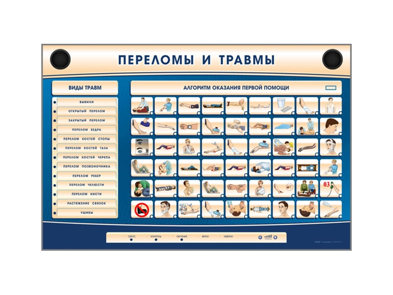 Интерактивный стенд-тренажер "Переломы и травмы": 1500 х 1000 х 50