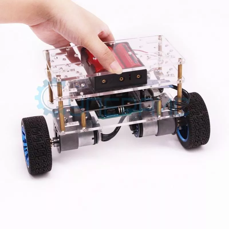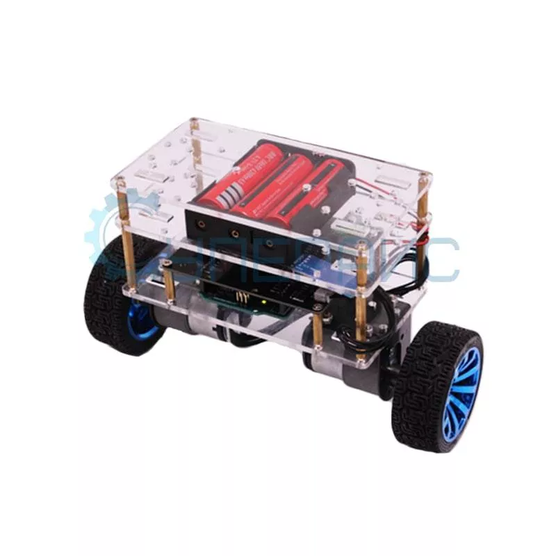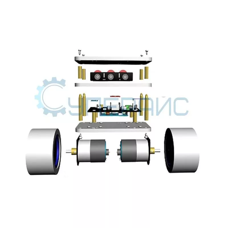 Робот-конструктор отличается быстрой реакцией и очень мобилен, благодаря конструкции шасси он способен совершать поворот на месте и маневрировать. Он создан на базе микроконтроллера Uno, совместимым со средой Arduino, и включает в себя все необходимое для сборки: два электромотора с редуктором, набор с деталями шасси, драйвер моторов, модули гироскопа и акселерометра. Питается робот от литий-ионных аккумуляторов и способен работать автономно почти целый вечер!