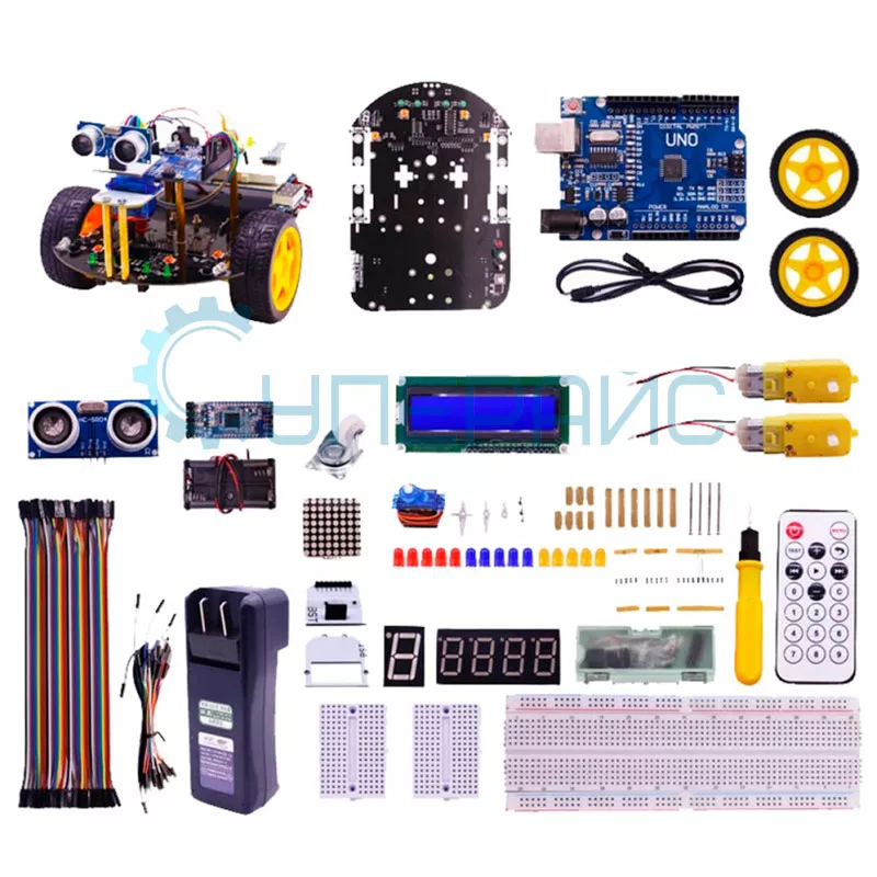 Программируемый конструктор создан на базе микроконтроллера Uno и включает в себя все необходимое для сборки: