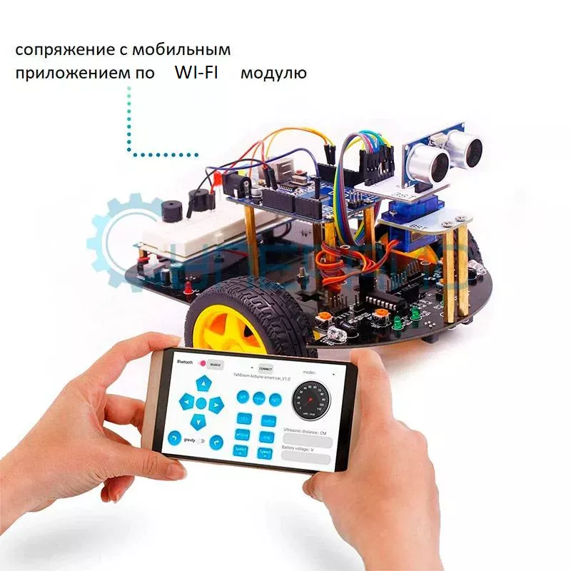 выполнение команд дистанционно. Готовый робот исполняет команды с пульта дистанционного управления не хуже игрушечной радиоуправляемой машинки. Также можно осуществлять управление автомобилем посредством Wi-Fi прямо из мобильного приложения на вашем телефоне.