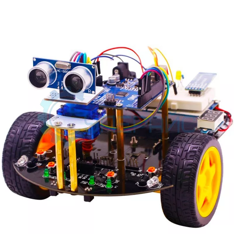 движение по заданной траектории или линии. В заданном режиме машинка-робот передвигается по заранее сформированному пути благодаря существованию датчиков линии. Robot Car умеет двигаться вперед, назад, вправо и влево, он легко проезжает как плавные повороты, так и трудные участки маршрута, например, в форме восьмерки;преодоление препятствий. Робоплатформа оснащена ультразвуковым датчиком расстояний, который используется для нахождения преград на пути робота. Посредством особого алгоритма передвижения роботу удается объезжать препятствия и не застревать в углу;