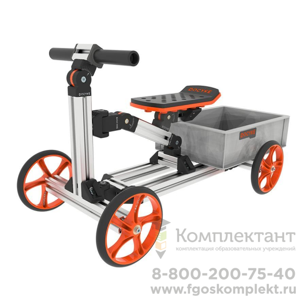 Получите увлекательный опыт вместе со своими детьми, строя разные средства передвижения. Все комплекты DOCYKE полностью совместимы между собой. А детали конструктора выполнены из материалов с повышенной устойчивостью к нагрузкам. Максимально допустимая нагрузка зависит от типа конструктора, для DOCYKE M-KIT - 50кг. Не менее 40 вариантов сборки, количество ограничивает только ваша фантазия. Конструктор DOCYKE объединит всю семью созданием необычного транспорта. В комплект входят соединители, алюминиевые профили, винты и 4 колеса диаметром 20 см.