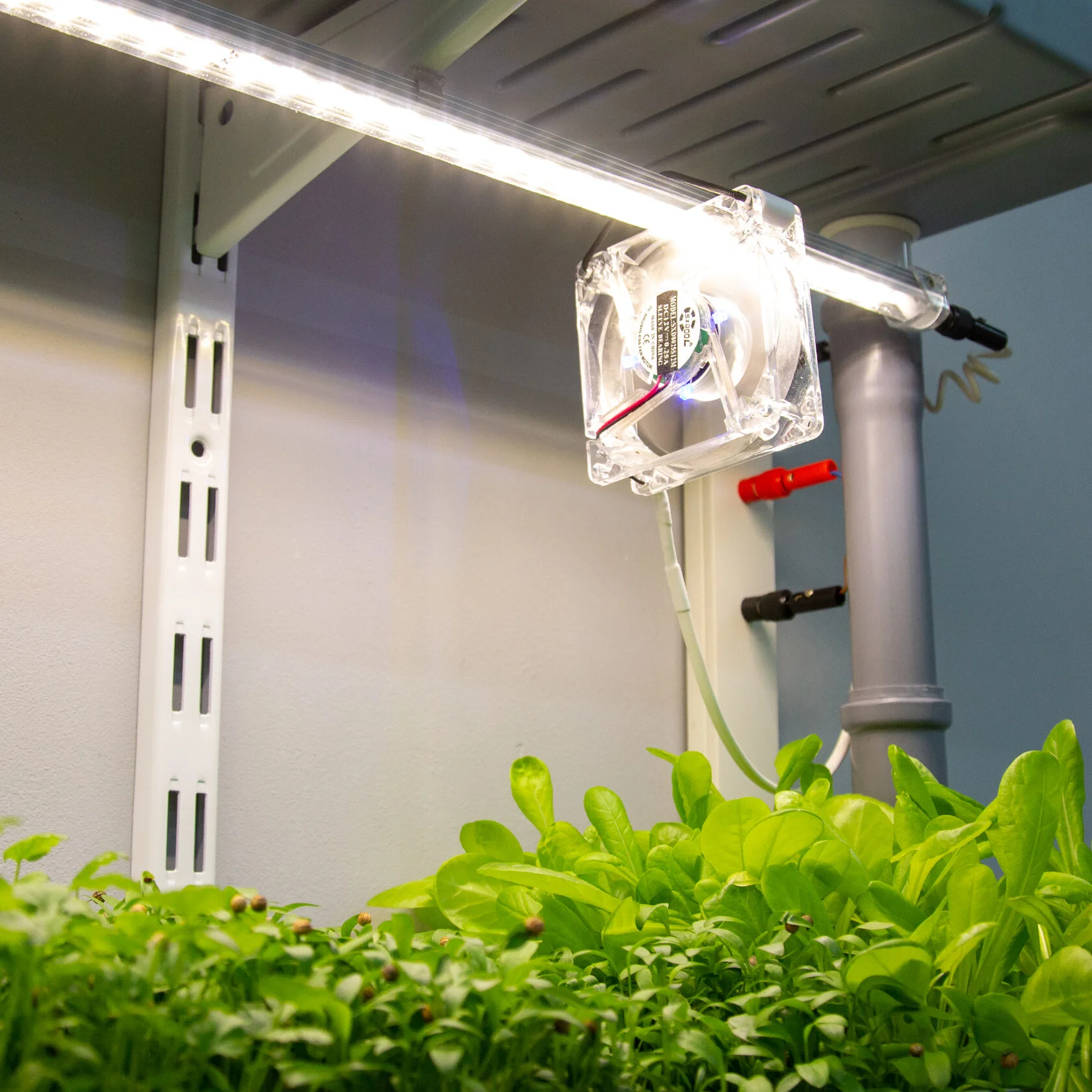 • 3 Энергоэффективных фито-светильников длиной 117 см (156 полно спектральных светодиодов и 30 с длиной волны 625 Нм–красный цвет) 25 Вт, 12 В. Система лёгкого, без использования инструментов, изменения количества, высоты подвеса и направления светового потока на каждом этаже
