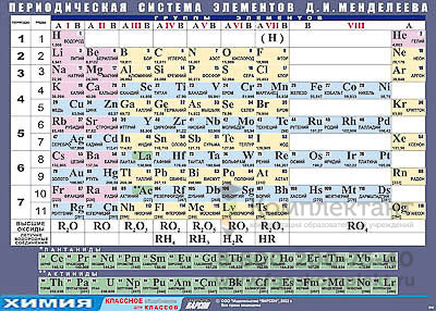 Таблица демонстрационная Периодическая система элементов Д. И. Менделеева (винил 70х100)