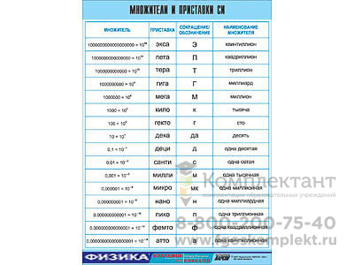 Таблица демонстрационная Множители и приставки СИ (винил 70х100)