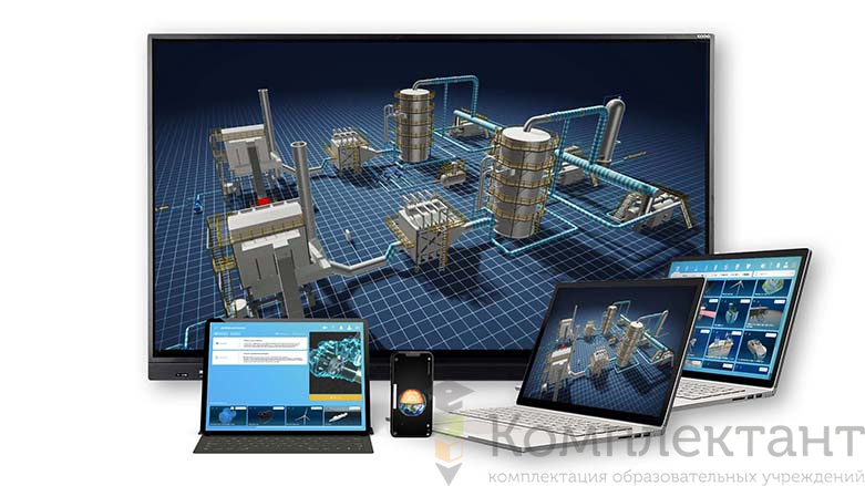 Наглядное 3D пособие ориентировано на школьную программу и может легко запускаться на интерактивных сенсорных панелях. Учебные виртуальные сцены направлены на изучение основных школьных направлении, таких как физика, химия, биология, география, окружающий мир, технологии.