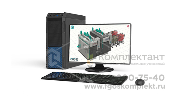Учебный комплекс, в котором реализованы трехмерные модели и пульты управления, являющиеся аналогами реального оборудования термической обработке рыбных деликатесов.